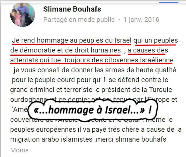 SLIMANE BOUHAFS agent de la 5em colonne de Lavigerie, le réseau des média de la subversion (El-Watan, Le Matin, etc..), et les berbéristes "baptisés" des réseaux sociaux, PLEURNICHENT et accusent la sécurité nationale et le gouvernement d'abus de pouvoir ! La défense du pays est selon eux abusive, aux yeux de ces ennemis de l'intérieur elle enfreint leurs libertés ! Un exemple (parmi des milliers) des "innocentes" actions de SLIMANE BOUHAFS, "de sa défense des droits de l'homme " et des droits des chrétiens, DES ATHÉES, DES BOUDHISTES, en Algérie ! TOUS ADMIRATEURS DÉCLARÉS OU CACHÉS ......D’ISRAËL .